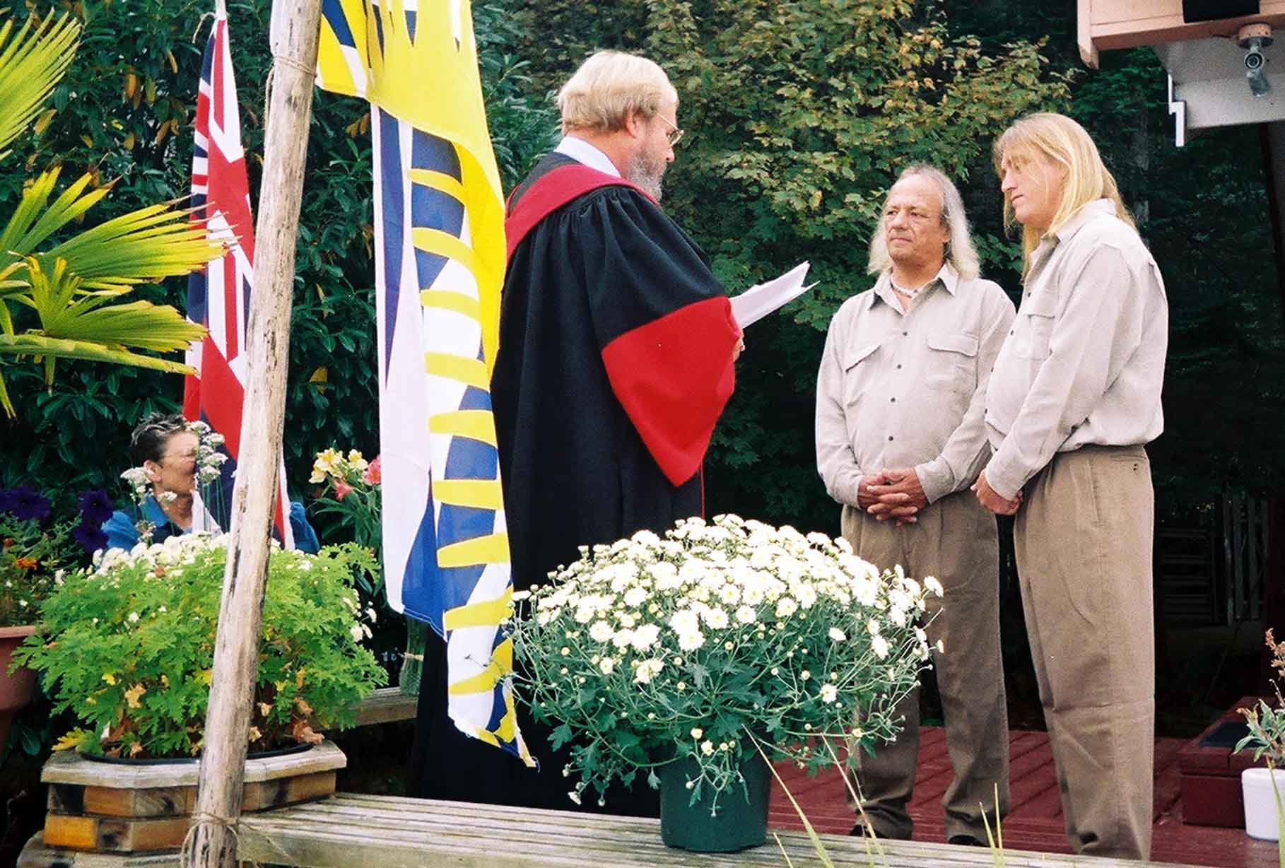 With the recent Canadian court rulings supporting the rights of same-sex couples to marry, Hawaiians John and Steve, after 21 years as partners together, took the opportunity to make theirs an official union. We were honored by their choice of our B&B as the location for their exchange of vows. Below is copied their wedding announcement:"John Furtak and Steven Keltner of Kauai, Hawaii are proud to announce that after 21 years of partnership, they officially performed their Civil Marriage Ceremony on October 4th 2003 in Comox, Vancouver Island, British Columbia, Canada. The ceremony performed under both the British Columbia and Hawaii flags was performed by BC Marriage Commissioner the Honorable Bruce Curtis. The ceremony was held at Copes Islander Oceanfront B&B with a reception dinner held at The Old House Restaurant. John & Steve wish to thank (Mahalo) the people of Vancouver Island, the Province of British Columbia and the Country of Canada for their true ALOHA and Wisdom." | Français | Deutsch | Español | Italiano | Nederlands | | Home | |